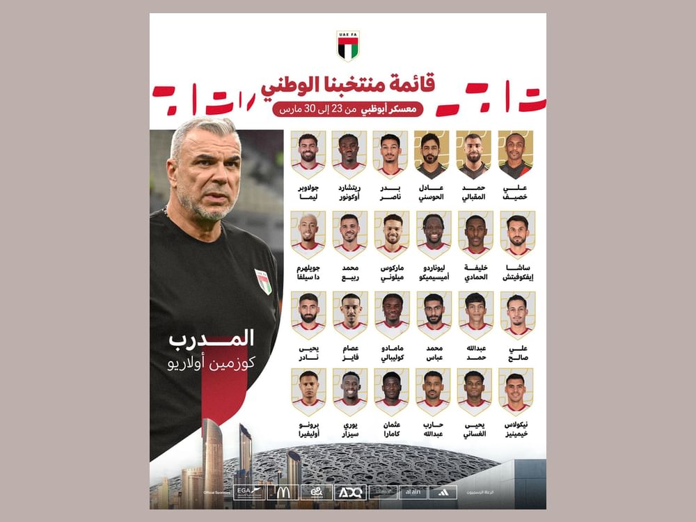 24 لاعبا في قائمة المنتخب الوطني لكرة القدم استعدادا لتجمع أبوظبي