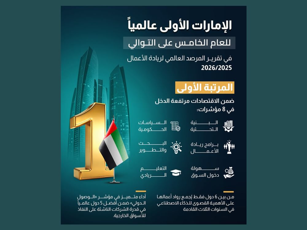 الإمارات الأولى عالمياً للعام الخامس على التوالي في تقرير المرصد العالمي لريادة الأعمال 2025 /2026