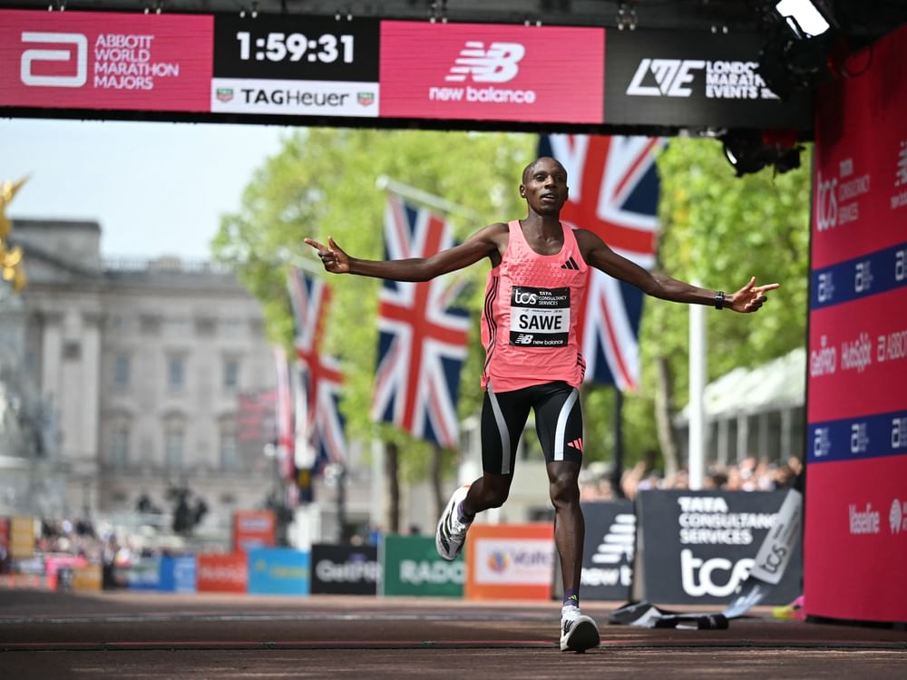 لندن في 26 أبريل /وام/ أصبح الكيني سيباستيان ساوي أول رجل يقطع مسافة ماراثون في أقل من ساعتين بعد فوزه بماراثون لندن في بزمن ساعة و59 دقيقة و30 ثانية اليوم محطما الرقم القياسي العالمي الذي كان يحمله كيلفن كيبتوم الذي سجل ساعتين و35 ثانية في ماراثون شيكاجو في أكتوبر 2023. ساوي البالغ من العمر 31 عام...