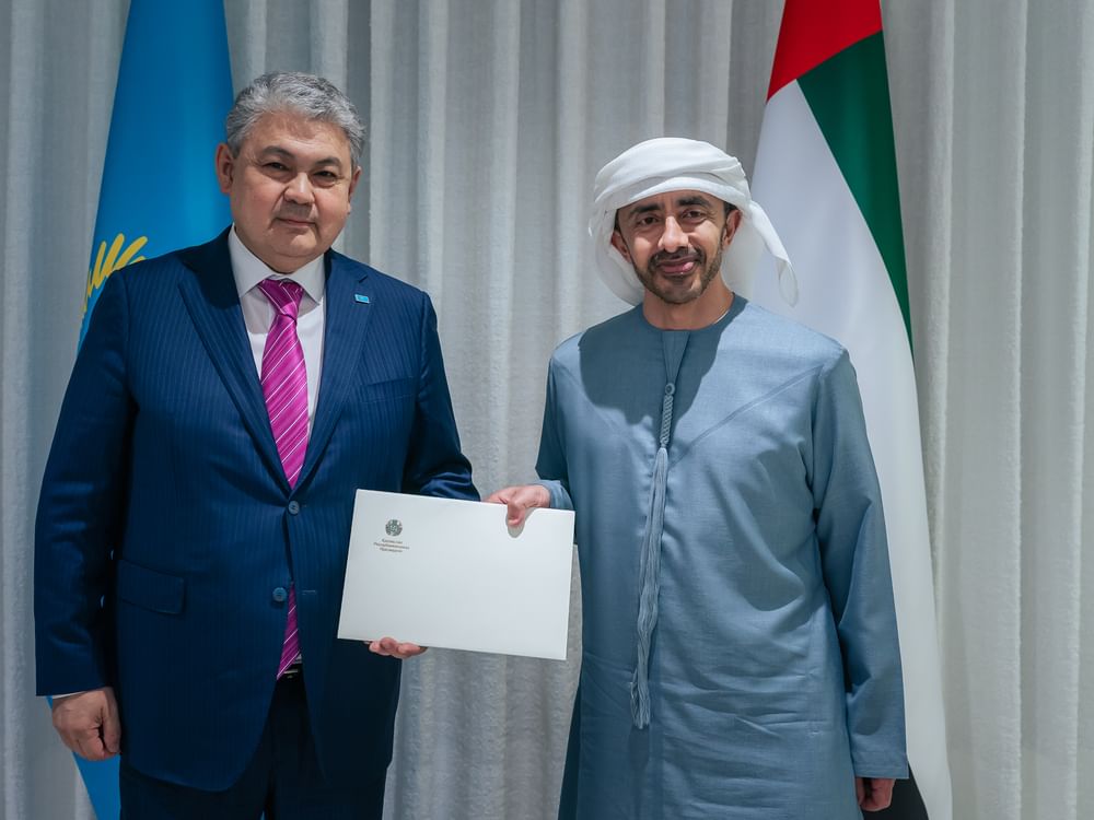رئيس الدولة يتلقى رسالة خطية من رئيس كازاخستان تسلمها عبدالله بن زايد