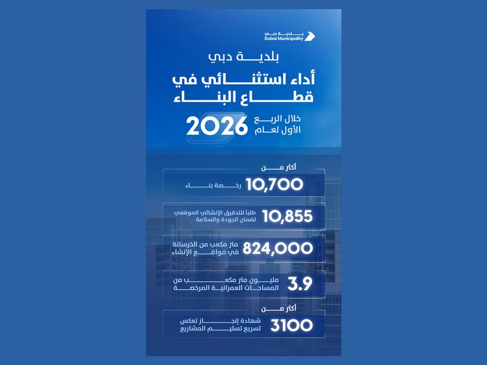 دبي في 25 مارس /وام/ أعلنت بلدية دبي عن تحقيق مؤشرات أداء متقدمة في قطاع البناء والتشييد خلال الفترة الممتدة من بداية عام 2026 وحتى مارس الجاري، في انعكاس مباشر للحراك التنموي المتسارع الذي تشهده الإمارة، والبيئة الاستثمارية الجاذبة التي تواصل ترسيخ مكانة دبي كإحدى أبرز الوجهات العالمية في التطوير ا...