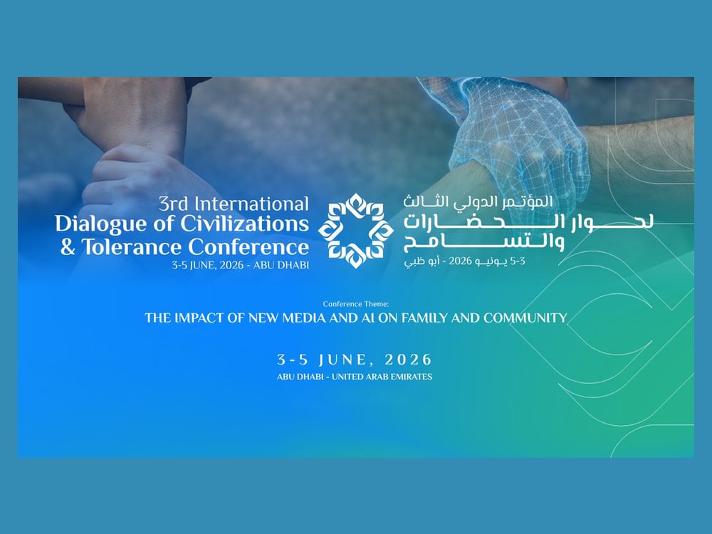 أبوظبي في 2 أبريل/ وام/ تستضيف العاصمة أبوظبي، أعمال النسخة الثالثة من المؤتمر الدولي لحوار الحضارات والتسامح، والذي يُعقد تحت شعار "تأثير الإعلام الجديد والذكاء الاصطناعي على الأسرة والمجتمع"، خلال الفترة من 3 إلى 5 يونيو 2026 وذلك تماشيًا مع رؤية القيادة الرشيدة لدولة الإمارات بإعلان عام 2026 "عام...