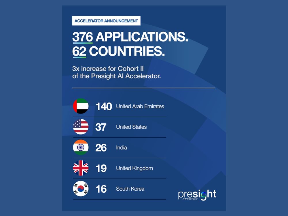 أبوظبي في 6 أبريل /وام/ كشفت بريسايت، الشركة العالمية الرائدة في مجال الذكاء الاصطناعي ، التابعة لمجموعة G42 والتي تقوم بتصميم ونشر الأنظمة الذكية للحكومات وقطاعات البنية التحتية الحيوية، اليوم عن تلقيها 376 طلباً من 62 دولة للالتحاق بالدفعة الثانية من برنامجها لتسريع نموّ الذكاء الاصطناعي. واستناد...