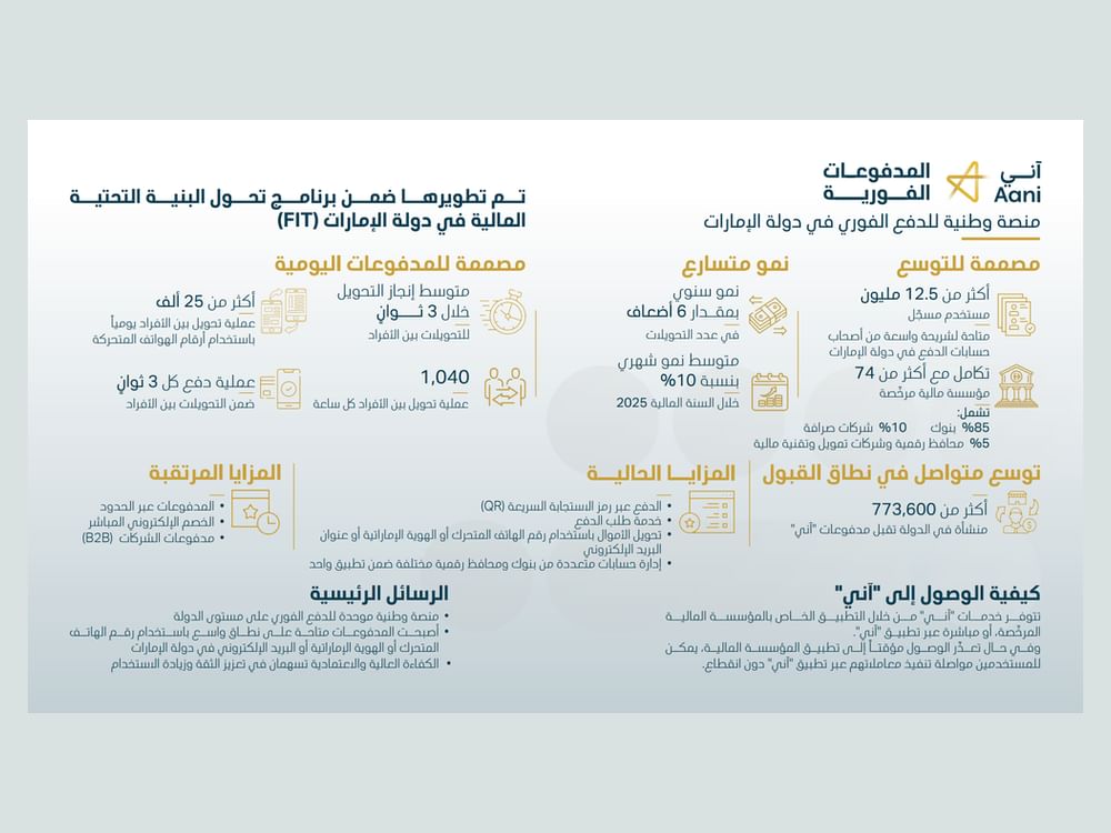 "آني".. نقلة نوعية في المدفوعات الرقمية بالدولة و12.5 مليون مستخدم وتحويلات فورية