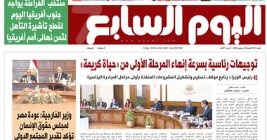 ينشر "اليوم السابع" فى عدده الصادر غدا الجمعة، تفاصيل هامة حول العديد من الأحداث الجارية على الساحتين الداخلية والخارجية أبرزها: توجيهات رئاسية بسرعة إنهاء المرحلة الأولى من حياة كريمة.. رئيس الوزراء يتابع موقف تسليم وتشغيل المشروعات المنفذة بأولى مراحل المبادرة الرئاسية. بعد اختيار مصر كأول دولة ل...