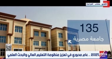 عرضت قناة "إكسترا نيوز"، تقريرا يسلط الضوء على النقلة النوعية التي شهدها قطاع التعليم العالي والبحث العلمي في مصر خلال عام 2025، مؤكداً نجاح الدولة في تنفيذ مستهدفات الاستراتيجية الوطنية للتعليم العالي، ورفع تنافسية المؤسسات الأكاديمية المصرية إقليمياً ودولياً. وكشف التقرير أن عام 2025 شهد دخول 12...