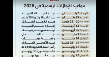 قرر الدكتور مصطفى مدبولي، رئيس مجلس الوزراء، ترحيل إجازة عيد ثورة 25 يناير وعيد الشرطة، لتكون يوم الخميس الموافق 29 يناير 2026 بدلًا من يوم الأحد 25 يناير، على أن تكون إجازة رسمية مدفوعة الأجر. ويطبق القرار على العاملين في الوزارات، والمصالح الحكومية، والهيئات العامة، ووحدات الإدارة المحلية، إلى جا...