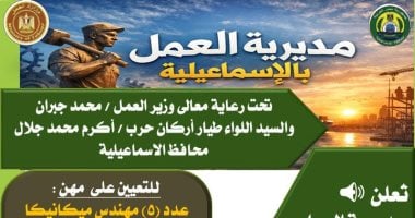 تعرف على شروط التقديم للوظائف الخالية فى الإسماعيلية