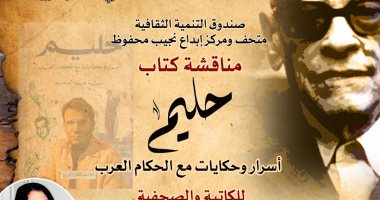 فى إطار برنامج الأنشطة الثقافية والفكرية، ينظم متحف نجيب محفوظ، التابع لقطاع صندوق التنمية الثقافية، ندوة لمناقشة كتاب "حليم.. أسرار وحكايات مع حكام العرب" للكاتبة والصحفية سمية عبد المنعم، وذلك في السادسة من مساء اليوم السبت بمقر المتحف في تكية محمد أبو الدهب. ويشارك في مناقشة الكتاب كل من الناقد...
