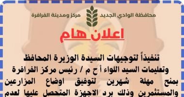 أعلنت الوحدة المحلية لمركز ومدينة الفرافرة بمحافظة الوادي الجديد استمرار تسليم أجهزة الانفرتر الخاصة بمحطات الطاقة الشمسية المتحفظ عليها سابقاً بمخازن الوحدة المحلية للتقاعس عن سداد المديونية المستحقة على الأفراد والشركات وناشدتهم بسرعة الحضور لديوان عام مركز الفرافرة لاستلام الأجهزة شريطة قيامهم با...