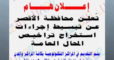 محافظة الأقصر تعلن تبسيط إجراءات استخراج تراخيص المحال العامة