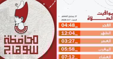 مواقيت الصلاة فى سوهاج اليوم السبت 7 مارس 2026 السابع عشر من رمضان