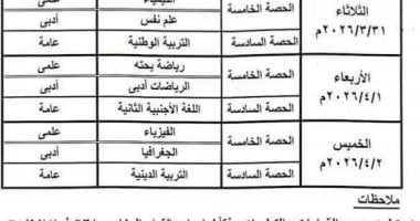 أعلنت مديرية التربية والتعليم بمحافظة سوهاج، من خلال إدارة التعليم الثانوي العام، جدول امتحانات شهر مارس لعام 2026 لطلاب الصف الثاني الثانوي العام، وذلك في إطار خطة وزارة التربية والتعليم لمتابعة مستوى الطلاب من خلال التقييمات الدورية خلال العام الدراسي. ووفقًا للجدول المعلن، تبدأ امتحانات الصف الث...