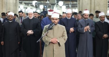 أئمة قبلة الجامع الأزهر يؤدون صلاة التراويح في آخر ليلة وترية من رمضان