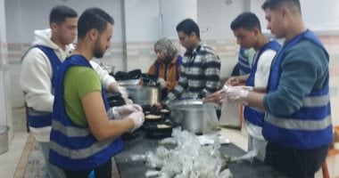 طلاب جامعات يشاركون فى تجهيز وجبات إفطار التحالف الوطني ببني سويف
