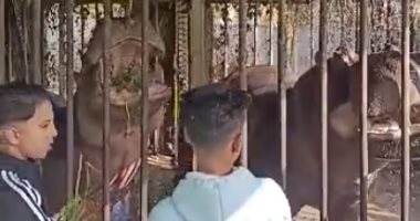 شاهد الأسد عبده وفرس النهر جمال يستقبلان الزوار أول أيام العيد بحديقة بنى سويف
