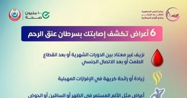 6 أعراض تكشف الإصابة بسرطان عنق الرحم.. وزارة الصحة توضح