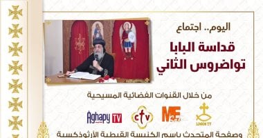 أعلن المركز الإعلامي للكنيسة القبطية الأرثوذكسية عن إقامة الاجتماع العام الأسبوعي لقداسته، البابا تواضروس الثاني، بابا الإسكندرية وبطريرك الكرازة المرقسية، مساء اليوم في تمام الساعة السادسة مساءً. يأتي هذا الاجتماع في إطار الحرص الدائم لقداسته على التواصل مع أبناء الكنيسة وتقديم التعليم الروحي والإ...
