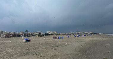 سماء ملبدة بالغيوم مع هدوء الأمواج على شاطئ البحر المتوسط في بورسعيد