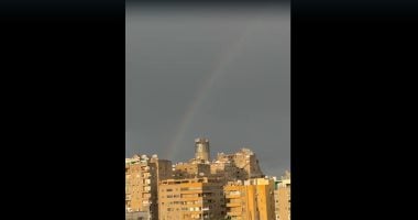 قوس قزح يزين سماء الجيزة بعد ساعات من الأمطار الغزيزة.. فيديو