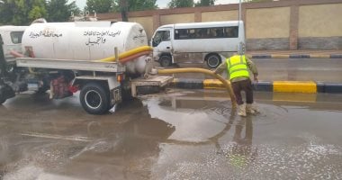 هيئة النظافة بالجيزة تدفع بمعداتها لشفط مياه الأمطار وتيسير الحركة المرورية