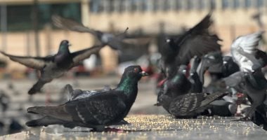 تجمعات كبيرة للحمام تجذب أنظار الجميع بميدان الشهداء فى بورسعيد.. فيديو وصور