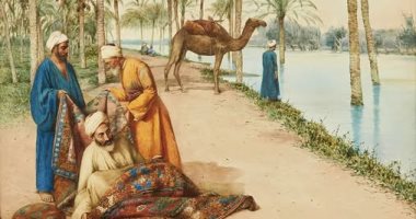لوحة اليوم.. تجار سجاد بجوار النيل للفنان الإيطالى إنريكو تارينجى
