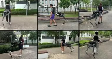بدلة قوة غريبة تحول مرتديها إلى قنطور نصف بشرى ونصف آلى.. فيديو