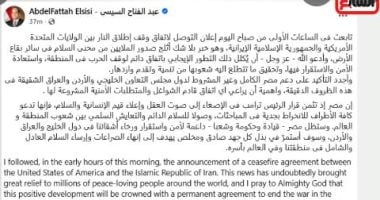 تفاصيل.. كلمة الرئيس السيسى حول وقف إطلاق النار بين أمريكا وإيران.. فيديو