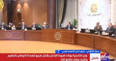 أكد الكاتب الصحفي جمال الكشكي، رئيس تحرير مجلة الأهرام العربي، أن الدولة المصرية تتبنى عقيدة استراتيجية راسخة ومستقرة منذ سبعينيات القرن الماضي، تقوم على إرساء مفاهيم السلام والاستقرار كحل وحيد للحفاظ على أمن الدول وشعوبها. وأوضح "الكشكي"، في مداخلة هاتفية لبرنامج التغطية المفتوحة على شاشة "إكسترا...