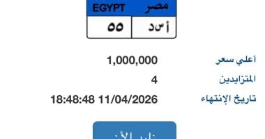 أعلنت بوابة مرور مصر الإلكترونية، عن مزايدة على لوحة معدنية مميزة للسيارات، وحملت الوحة رقم (أ سـ د - 55 ) سعرها وصل مليون جنيه، و4 أشخاص يزايدون عليها في المزاد. وأتاحت لجميع المواطنين الدخول في مزاد للحصول على لوحة معدنية مميزة للسيارات من خلال عرض مجموعة من أرقام اللوحات المعدنية الخاصة بالمركبا...