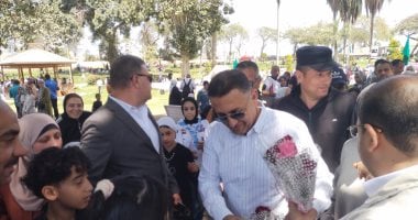 محافظ القليوبية يوزع الورود على المواطنين بحدائق القناطر الخيرية.. فيديو