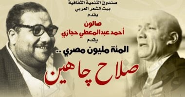 ينظم بيت الشعر العربي "بيت الست وسيلة" خلف الجامع الأزهر، التابع لقطاع صندوق التنمية الثقافية، أمسية جديدة ضمن صالون الشاعر الكبير أحمد عبد المعطي حجازي، تحت عنوان "المئة مليون مصري.. صلاح جاهين" وذلك في السادسة من مساء الأحد القادم 19 أبريل. وتأتي الأمسية استمرارًا لدور الصالون - الذي يعقد شهريًّا...