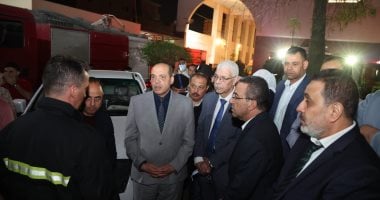 محافظ المنوفية يتفقد موقع حريق "مخزن الأدوية" بمبنى معهد الكبد القديم