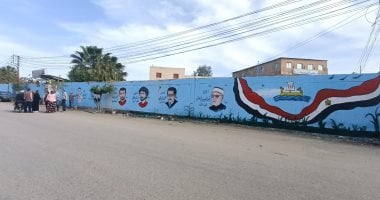 أسوار المصالح الحكومية ببيلا تتنزين بصور مفتى الجمهورية وأبو العنين شعيشع وأحمد رفعت