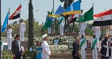 وضع إكليل الزهور أمام تمثال الإسكندر الأكبر اختفالا بتأسيس الاسكندرية.. فيديو