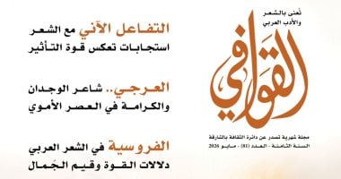 صدر عن "بيت الشعر" في دائرة الثقافة بالشارقة العدد 81 لشهر مايو من مجلة "القوافي" الشهرية، المتخصّصة بالشعر الفصيح ونقده - في عامها الثامن- التي تحتفي بالمواضيع ذات الصلة به بلاغةً ولغةً وتراثًا، كما تحتفي بالشعراء من مختلف العصور. وجاءت افتتاحية العدد التي استهلت بها القوافي عددها الجديد بعنوان" ب...