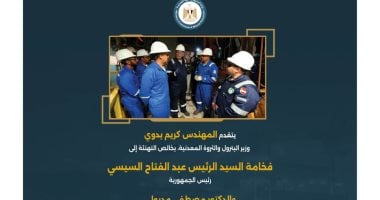 تقدم المهندس كريم بدوي، وزير البترول والثروة المعدنية، بخالص التهنئة إلى الرئيس عبد الفتاح السيسي، رئيس الجمهورية، والدكتور مصطفى مدبولي، رئيس مجلس الوزراء، وإلى عمال مصر والعاملين الكرام بقطاع البترول والثروة المعدنية، بمناسبة الاحتفال بعيد العمال. وأعرب الوزير عن تقديره العميق لجهود العاملين المخ...
